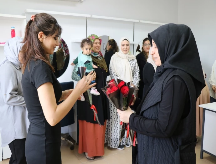 Ziyaretlerinde kadınlarla sıcak ve samimi sohbetler gerçekleştiren Fethiye Canpolat, kursiyerlere karanfil dağıtarak Anneler Günü’nü kutladı.