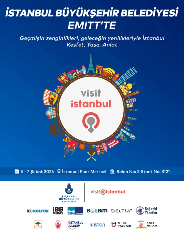 İstanbul Büyükşehir Belediyesi EMITT 2026’ya Kültür, Sanat ve Sosyal İşler Dairesi’ne bağlı 3 marka ve 8 iştirak şirketiyle katılacak. Fuarda İBB; İBB Kültür, İBB Miras, Visit İstanbul, İstanbul Ulaşım AŞ, Boğaziçi Yönetim AŞ, Metro İstanbul, Kültür AŞ, BELTUR, Şehir Hatları, BELBİM ve İETT markaları ile temsil edilecek.