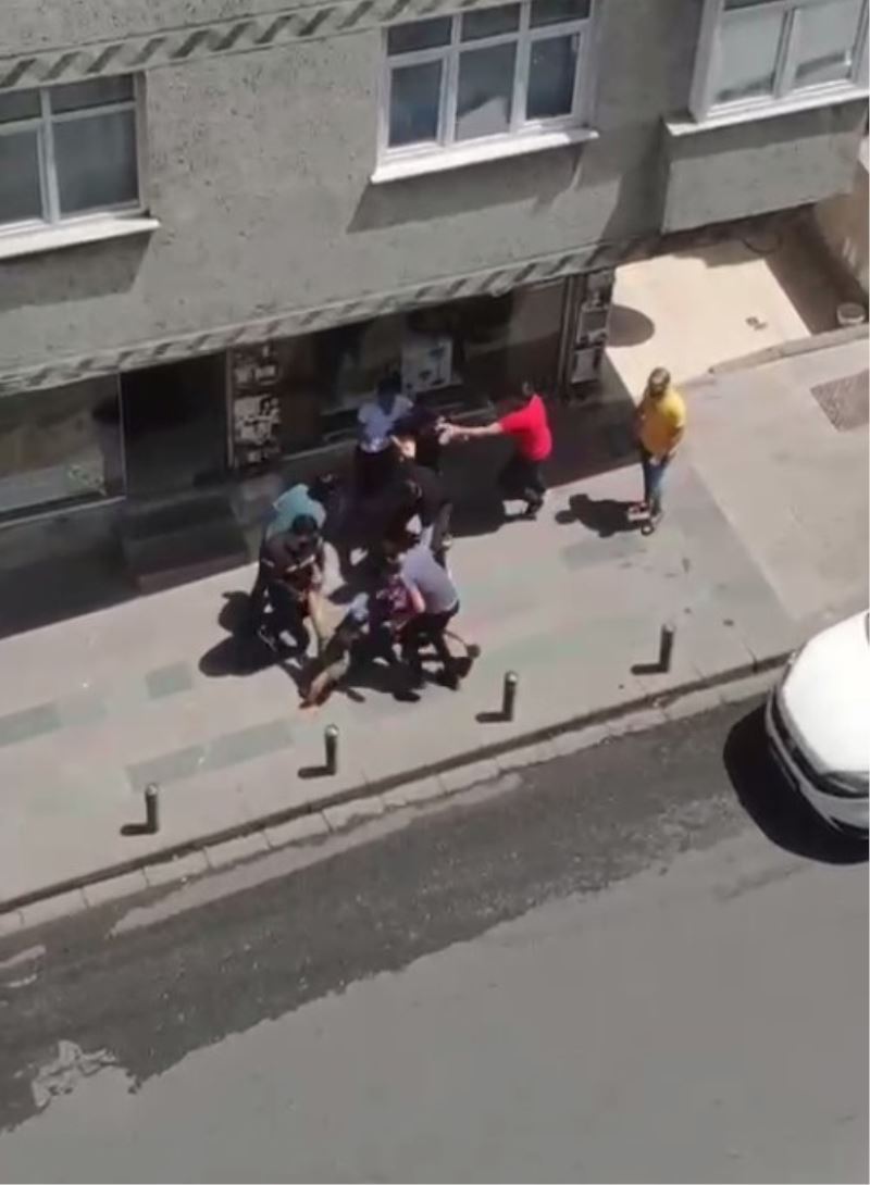 Olay, dün öğle saatlerinde Küçükçekmece Cumhuriyet Mahallesi’nde yaşandı. İddiaya göre, aralarında husumet olan Suriye uyruklu iki grup caddede, karşı karşıya geldi. Gruplar arasında önce sözlü tartışma başladı. Tartışmanın büyümesiyle taraflar birbirlerine yumruk ve tekmelerle girdi. Kavga edenler, çevredeki esnafın müdahalesiyle dağılırken, şahısların yumruklu tekmeli kavgası cep telefonu kamerasına yansıdı.