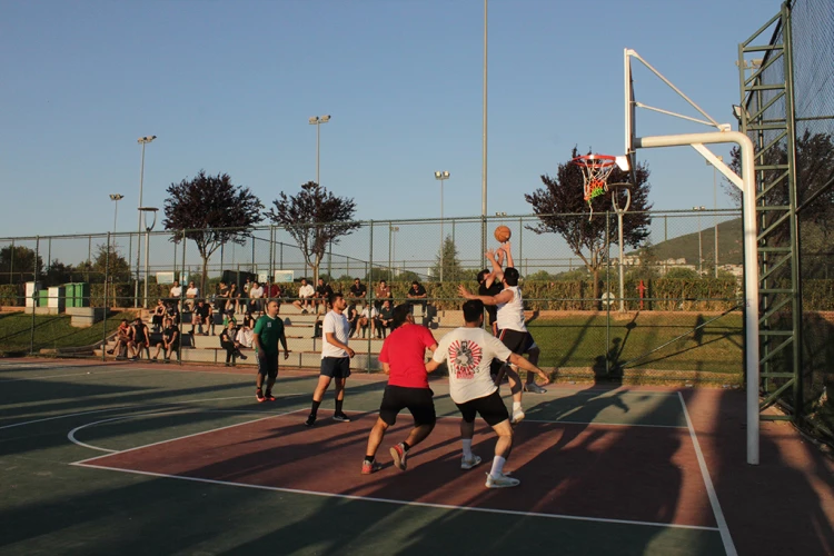 BURSA (İGFA) - İMO Bursa Şubesi Spor Komisyonu’nun katkılarıyla bu yıl ilk defa ‘Sokak Basketbolu Turnuvası’ düzenledi. Turnuvada 12 takım centilmence mücadele etmek için Hüdavendigar Kent Parkı Basketbol Sahası’nda bir araya geldi. Potaların tozunu attıran inşaat mühendisleri, hem eğlenip hem de sosyalleşti.