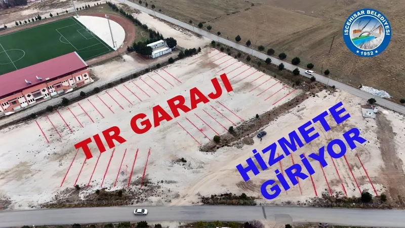 İscehisar Belediye Başkanı Seyhan Kılınçarslan, ilçe stadyumu yanında bulunan TIR garajının 1 Ocak 2026 Perşembe gününden itibaren hizmet vermeye başlayacağını açıkladı. Kılınçarslan, "Projenin hayata geçirilmesiyle ilçe merkezindeki trafik yükü azalacak, şoförlerimize ise güvenli, modern ve konforlu bir park alanı sunulacak" dedi.