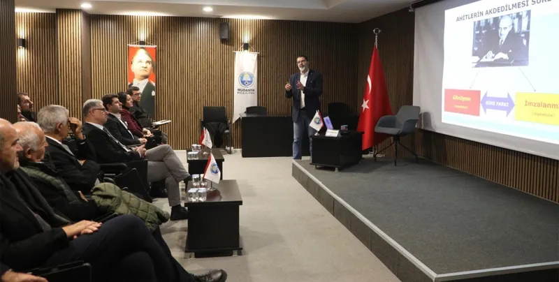 Törenin ardından, Bursa Uludağ Üniversitesi Uluslararası İlişkiler Bölümü Öğretim Üyesi Prof. Dr. Barış Özdal bir söyleşi gerçekleştirdi. "İsmet İnönü'nün Başbakanlık ve Cumhurbaşkanlığı Dönemlerinin Karşılaştırılmalı Diplomatik Analizi" başlıklı söyleşide Özdal, İnönü'nün siyasi hayatındaki farklı dönemlere değindi. Mudanya'nın diplomasi tarihi açısından önemli bir lidere ev sahipliği yaptığını vurguladı.