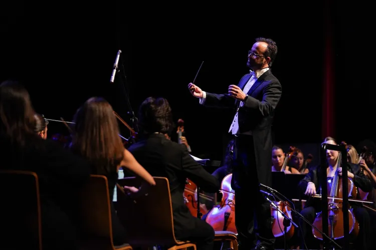 BGSO orkestra şefi Tarık Tal ise konuşmasında “Bu güzel ortamı oluşturduğunuz ekibinize çok teşekkür ederim. Sağ olun, var olun. Burada bu orkestranın kurulmasında, başlangıcında aslında önemli kişiler var. Onları da anmadan edemeyeceğim. Başta Ekrem İmamoğlu vebize her zaman desteklerini esirgemeyen, hâlâ oradan eli üzerimizde olan sevgili belediye başkanımız Mehmet Murat Çalık’a çok teşekkür ediyoruz” ifadelerine yer verdi.