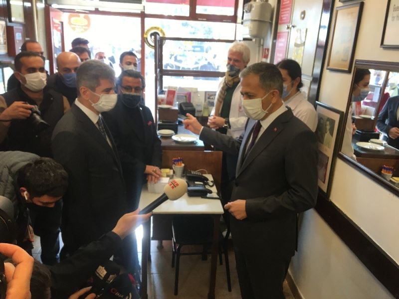 İstanbul Valisi Ali Yerlikaya, İçişleri Bakan Yardımcısı Muhterem İnce ve Tüm Restoranlar ve Turizmciler Derneği Başkanı Ramazan Bingöl ile birlikte kontrollü normalleşme döneminde Sultanahmet’teki iş yerlerini denetledi. Esnaf ve müşterilere salgınla mücadele ile ilgili uyarılarda bulundu.
