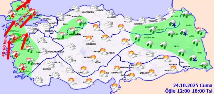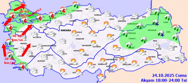 ANKARA (İGFA) - Meteoroloji Genel Müdürlüğü, 24 Ekim Cuma gününe ilişkin hava tahmin raporunu yayımladı. Rapora göre, ülke genelinde parçalı ve yer yer çok bulutlu hava hakim olacak.