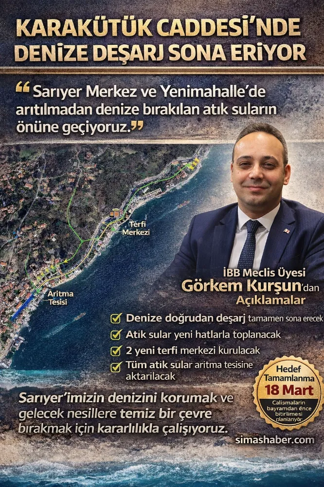 İstanbul Büyükşehir Belediyesi (İBB) Meclis Üyesi Görkem Kurşun, Sarıyer’in çevre geleceğini kurtaracak dev altyapı projesinin detaylarını paylaştı. Sarıyer Merkez ve Yenimahalle bölgesinde yıllardır süregelen denize doğrudan atık su deşarjı sorunu, İSKİ’nin yürüttüğü kapsamlı operasyonla sona eriyor.