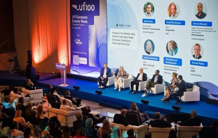 Selanik’teki konferansta, “Dünya Ticaret Savaşlarının Avrupa Fuarlarına Etkisi” başlıklı panele konuşmacı olarak katılan Tuğçe Cumalıoğlu, ABD’nin Çin’e uyguladığı yüksek vergilerin tetiklediği küresel ticaret savaşlarının Avrupa ve Türkiye’deki fuarlara olumlu yansımalarını değerlendirdi.