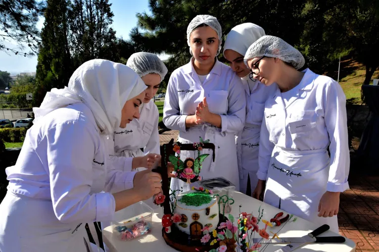İZMİR (İGFA) - Bornova Belediyesi, İzmir Şekerciler ve Pastacılar Odası ile İzmir Soroptimist Kulübü iş birliğiyle düzenlenen “İstihdam Garantili Pastacılık ve Ekmekçilik Kursu”, Evka-3 Mutfak Atölyesi’nde tamamlandı. Üç ay süren ve toplam 300 saatlik eğitimleri başarıyla bitiren 3’ü erkek 38 kursiyer, kalfalık sertifikalarını renkli bir pasta yarışmasıyla taçlandırdı. Yarışmada “Yukarı Bak” pastası birinciliği, “Çiçek Perileri” ikinci, “Te Fiti” ise üçüncülüğü kazandı.