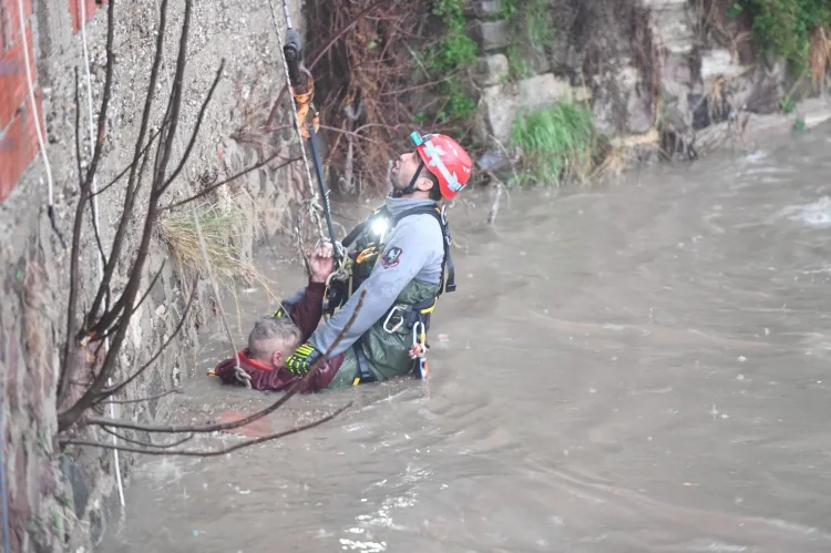 İzmir’de etkili olan sağanak yağış sırasında, 50–55 yaşlarındaki bir erkek Yeşildere’de dere içinde uyuduğu sırada yükselen sulara kapıldı. Yaklaşık 20 metre sürüklenen kişiyi tutunduğu noktada, ihbar üzerine olay yerine gelen İzmir Büyükşehir Belediyesi İtfaiye Dairesi Başkanlığı ekipleri kurtardı. Su seviyesinin yaklaşık 2 metreye ulaştığı dereye vinç yardımıyla inen ekipler vatandaşı bulunduğu noktadan kurtardı. Sedye ile yaklaşık 10 metrelik duvardan çıkarılan yurttaş, sağlık ekiplerine teslim edilerek hastaneye sevk edildi.