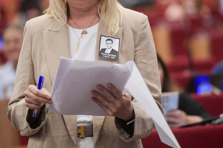 Meclis üyeleri yakalarına Ferdi Zeyrek’in resmini asarak oturuma katıldı.