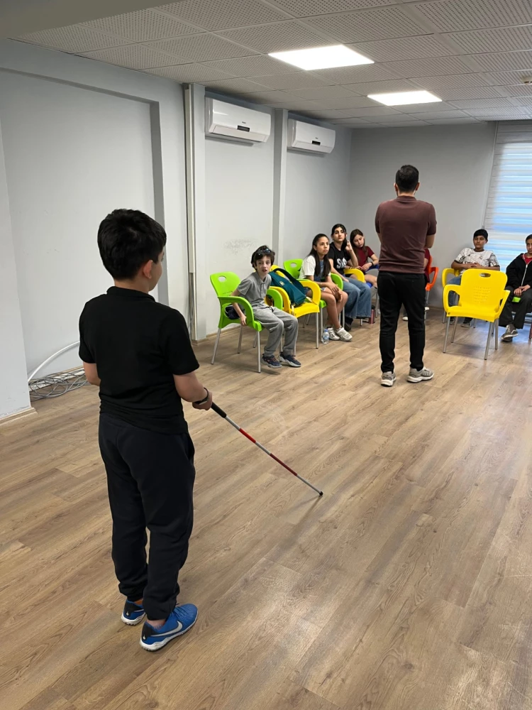 Eğitim, sağlık, adalete erişim gibi birçok konuda çözüm önerileri üzerine konuşuldu. Çocuklar, görme engellilerin bağımsız yaşamını destekleyici beyaz baston, braille alfabeli kitap gibi erişilebilirlik araçlarını yakından tanıma fırsatı buldu.