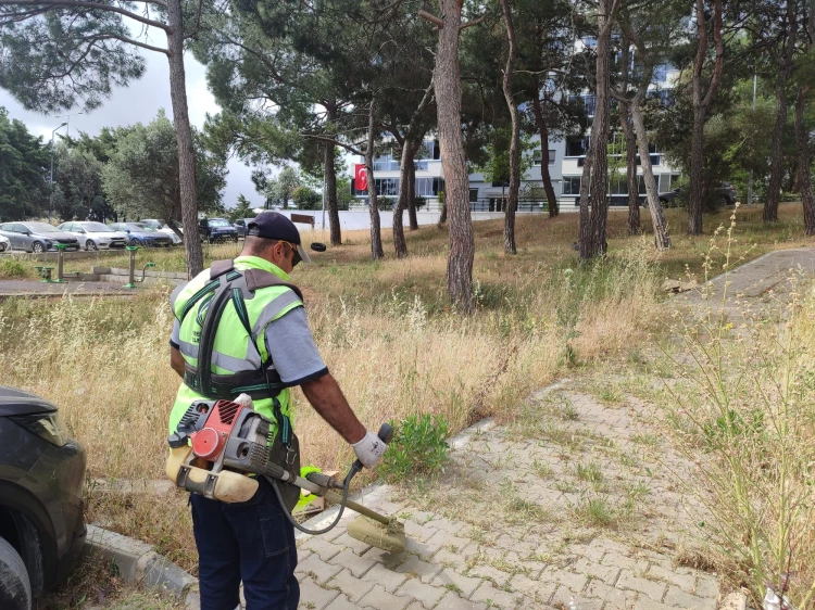 Bu konularda vatandaşlardan da yoğun bir talep aldıklarını belirten Güzelbahçe Belediye Başkanı Mustafa Günay, “Sıcaklar erken başladı, otlar uzadı bu hem kötü bir görüntü oluşturuyor hem de kuruyunca yangın tehlikesini artırıyor. Olumsuz durumu oluşturabilecek özellikle boş alanlarda uzayan ve kuruyan otları ekiplerimiz hızlı bir şekilde temizliyor. Güzelbahçe çok geniş bir ilçe. Şu an 150’ye yakın parkımız bulunmakta. Aktif yeşil alanımız 350 bin metrekarenin üstünde. Bu alalarda daha iyi hizmet vermek için Park Bahçeler ve Fen İşleri Müdürlüklerimiz her gün farklı bir mahallede temizlik yapıyor. Yaz aylarının gelmesiyle havalar ısındı. Güzelbahçe’de parkların dışında, kaldırım, refüj, cadde, bulvar ve boş alanlarda temizlik yapıyoruz. Özellikle vatandaşlarımızdan bu noktada çok talep gelmekte. Evlerinin yanında boş arsalar olduğunu ve otların insan boyunu aştığını, yabani hayvanların da evlere girdiği söyleyerek biçilmesini talep ediyorlar. Bu taleplere yetişmeye çalışıyoruz. Güzelbahçe geniş bir alana sahip. O yüzden ekiplerimize takviye olarak diğer müdürlüklerden de personel ilave ederek hafta sonları da bu temizliğe devam ediyoruz. İşleri yetiştirmek için geçici işçide alıyoruz. Yangınlar geçtiğimiz yıllarda canımızı çok yaktı. Yüksek sıcaklar kurumuş otlar için büyük tehlike arz ediyor, bunlar kurumudan bir an önce temizlenmesi gerekiyor." diye konuştu.