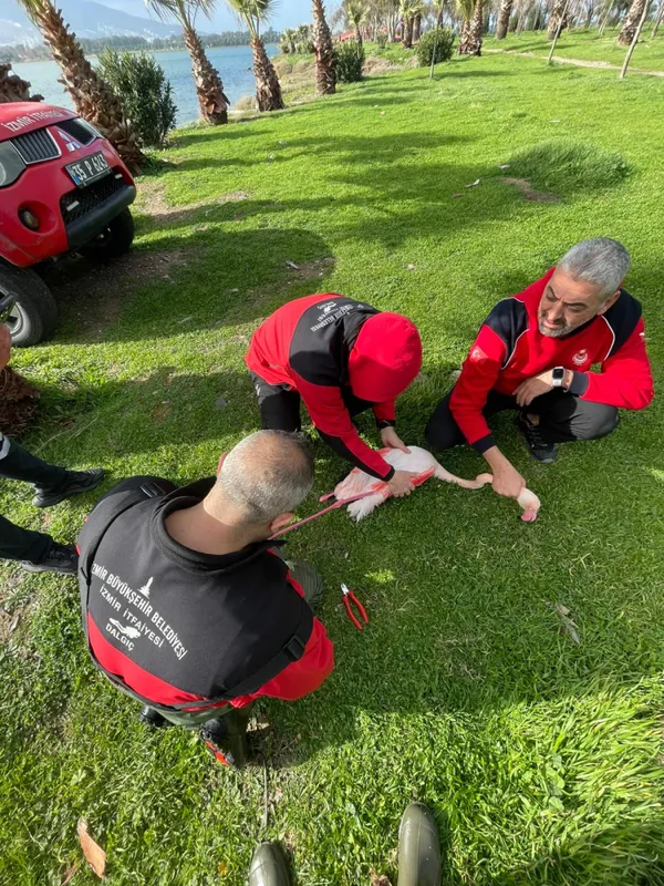 İZMİR (İGFA) - İzmir Büyükşehir Belediyesi İtfaiye Dairesi Başkanlığı, İnciraltı Barış Manço Köprüsü yakınlarında bir flamingonun ayağına olta misinası dolandığı ihbarı üzerine ekiplerini hızla bölgeye sevk etti.
