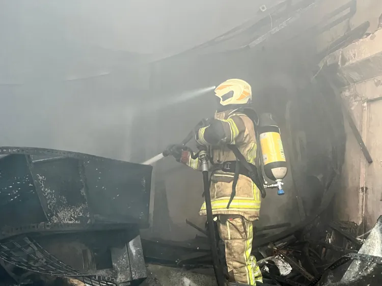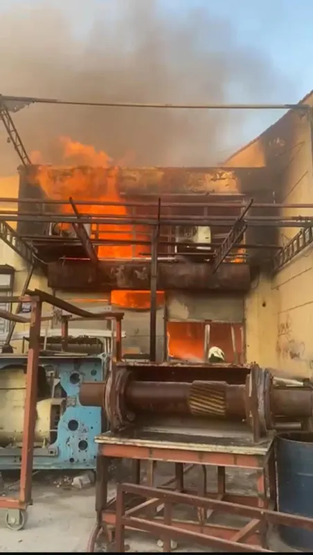 Yangının çevrede bulunan diğer iş yerlerine sıçraması önlenirken, bölgede soğutma çalışmaları devam ediyor.