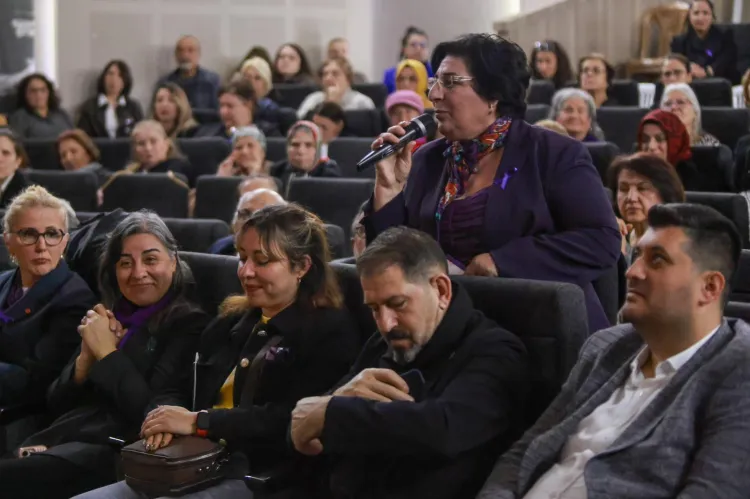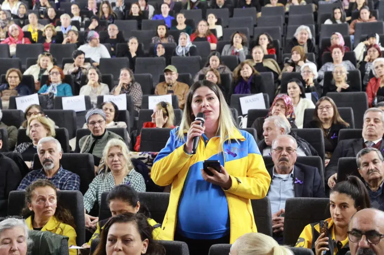 İZMİR (İGFA) - Muzaffer İzgü Konferans Salonu’nda gerçekleşen etkinlikte Karabağlar Belediye Başkanı Helil Kınay ve DİSK’in ilk kadın başkanı Arzu Çerkezoğlu, kadınların çalışma hayatındaki hakları ve örgütlenmenin önemine dikkat çekti.