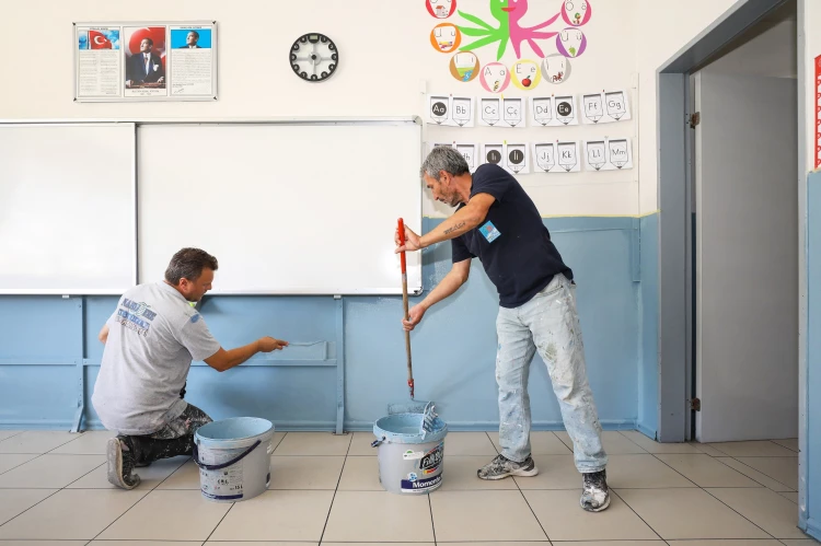 İzmir'de Narlıdere Belediyesi, yaz tatilin başlamasıyla birlikte, talep eden okullarda boya, badana ve bakım çalışması gerçekleştiriyor