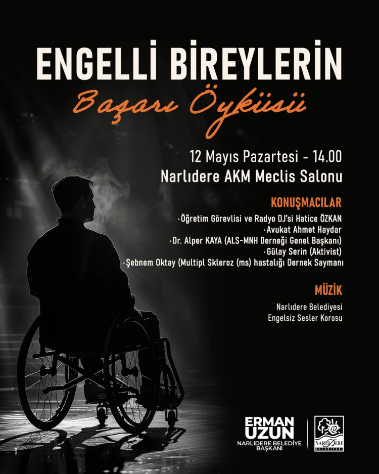 12 Mayıs Pazartesi günü saat 14.00’te Narlıdere Atatürk Kültür Merkezi Meclis Salonu’nda düzenlenecek “Engelli Bireylerin Başarı Öyküsü” başlıklı panelde ise, Öğretim Görevlisi Hatice Özkan, Avukat Ahmet Haydar, ALS-MNH Derneği Genel Başkanı Dr. Alper Kaya, aktivist Gülay Serin ve Multipl Skleroz (ms) Hastalığı Dernek Saymanı Şebnem Oktay birer konuşma yapacak.