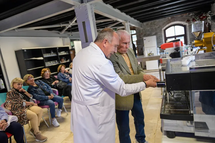 İzmir Büyükşehir Belediyesi’nin Güzelyalı’da bulunan Sağlıklı Yaş Alma Merkezi’ne kayıtlı ileri yaş yurttaşlar, Meslek Fabrikası’nda bir günlük barista eğitimine katıldı. Üç gün boyunca üç farklı grup halinde eğitime gelen katılımcılar, Barista Eğitmeni Ercan Turan tarafından teorik ve uygulamalı olarak kahveye dair bilgiler edindi.