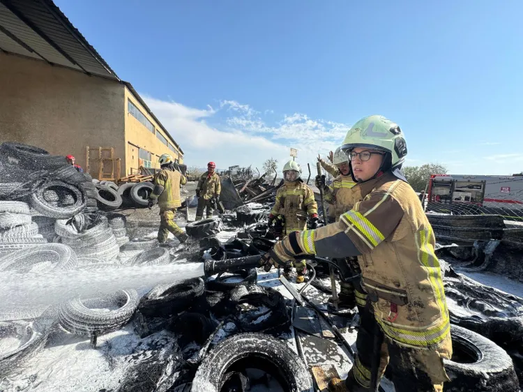 İzmir Büyükşehir Belediyesi İtfaiye ekipleri, İzmir Çanakkale Yolu Helvacı Kavşağında bulunan bir lastik deposunun çevresinde çıkan yangına müdahale etti. Yangın, işletmeye sıçramadan kontrol altına alındı.