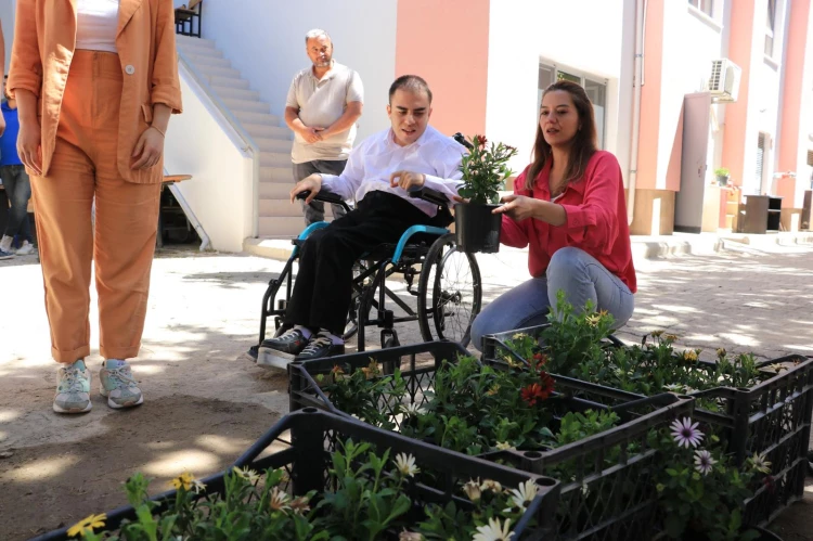 İzmir'de Engelliler Haftası'nda Rasim Önel Ticaret Mesleki ve Teknik Anadolu Lisesi'nin gösterisine katılan İzmir Büyükşehir Belediyesi ekipleri, öğrencilerin isteği üzerine okula piknik masası kazandırarak çiçek dikti.