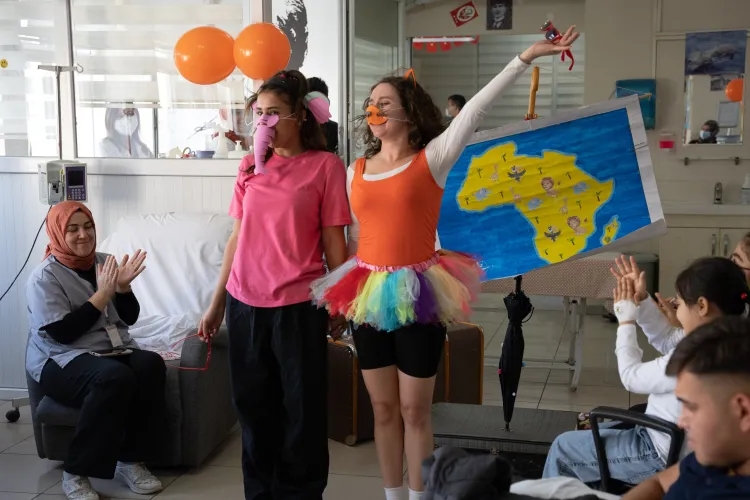 İZMİR (İGFA) - İzmir Büyükşehir Belediyesi Şehir Tiyatroları (İzBBŞT) onkoloji servislerinde tedavi gören çocuklara moral vermek ve sanatla iletişimlerini güçlendirmek için başlattığı “Sanat İyileştirir” projesi kapsamında ziyaretlerini sürdürüyor. İzBBŞT, proje için özel olarak “Pembe Hortum ve Sarman” isimli çocuk oyunu ile “2-8 Kasım Lösemili Çocuklar Haftası” nedeniyle düzenlenen etkinlikler kapsamında Dr. Behçet Uz Çocuk Hastalıkları ve Cerrahisi Eğitim ve Araştırma Hastanesi’ndeki miniklerle bir araya geldi.