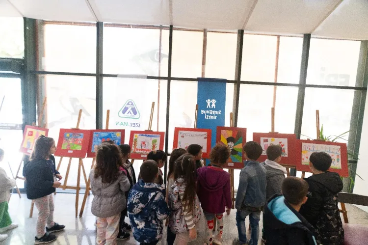 Atatürk portresinin birbirinden güzel renklerle donatıldığı, Cumhuriyet coşkusunun renkli çiçekler, bayraklar, rengarenk gökkuşağı ile anlatıldığı eserler öğrenci grupları, sergiyi gezen büyük küçük herkes tarafından büyük beğeni topladı. Yuvamız İzmir çocukları Ata’larına olan özlemlerini anlattıkları resimlerini de 10 Kasım’dan itibaren yine aynı yerde sergileyecek.