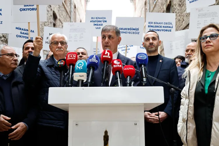 İZMİR (İGFA) - Vakıflar Genel Müdürlüğü tarafından Meslek Fabrikası binasının boşaltılması için gönderilen tebligat nedeniyle sabah saatlerinden itibaren tarihi binada nöbet tutan İzmir Büyükşehir Belediye Başkanı Dr. Cemil Tugay, yaşanan gelişme üzerine basın mensuplarına açıklama yaptı.