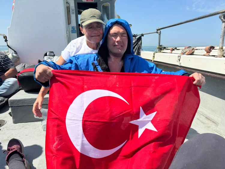 TÜRK BAYRAĞI İLE KIYIYA ÇIKTI