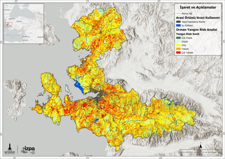İZMİR (İGFA) - Mevsim normallerinin üzerindeki sıcaklıkların etkili olduğu İzmir, günlerce orman yangınları ile mücadele etti. Yerleşim yerlerini de etkileyen yangınlar İzmir için hala ciddi risk oluşturuyor. “İzmir’de Orman Yangını Riskinin Mekânsal Analizi” raporunu hazırlayan İzmir Planlama Ajansı (İZPA) da bu tehlikeye dikkat çekti.
