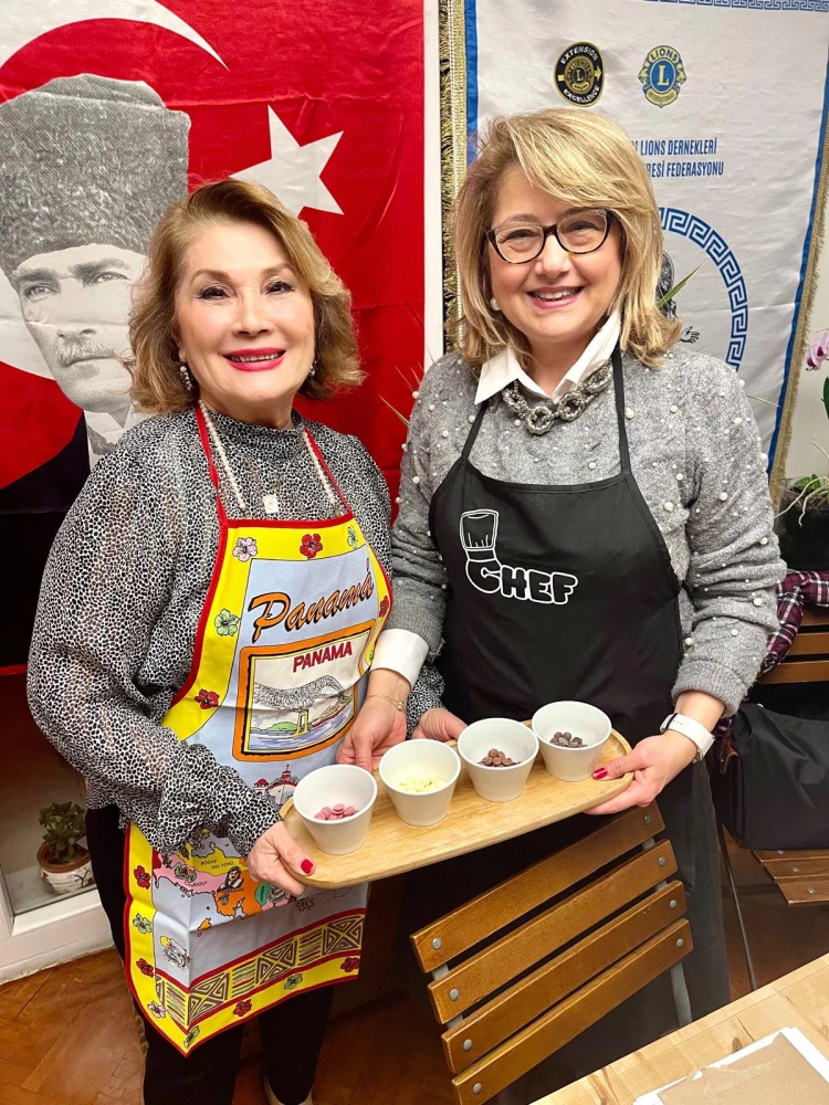 İzmir Artemis Lions Kulübü’nün başkan ve üyeleri, Alsancak’ta faaliyet gösteren çikolata ve tatlar atölyesinde, el yapımı çikolata üretimini öğrendi.