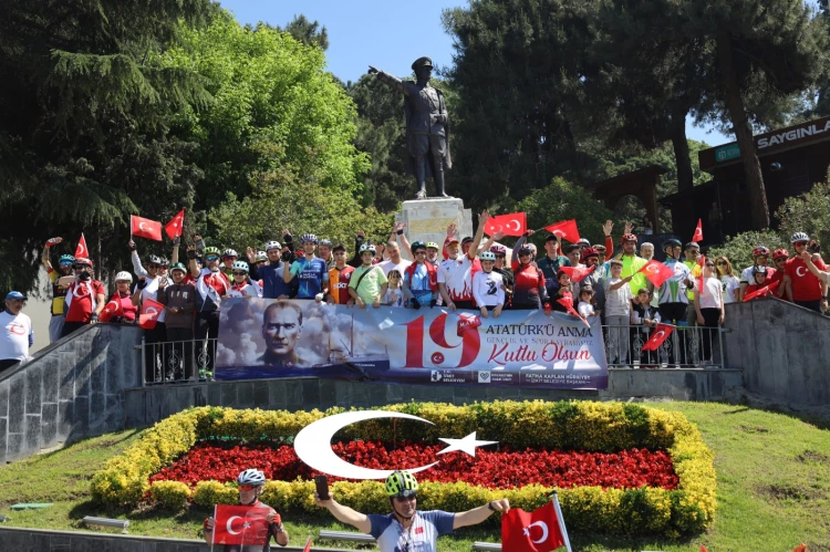 Bisiklet turunun ardından katılımcılar Kültür Tepesi Atatürk Anıtı’na çelenk sunarak büyük önder Mustafa Kemal Atatürk’ü andılar.