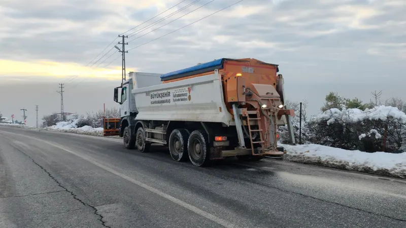Kahramanmaraş Büyükşehir Belediyesi, şehir genelinde etkisini sürdüren olumsuz hava koşullarının ulaşımı aksatmaması ve vatandaşların günlük yaşamında mağduriyet yaşanmaması için çalışmalarını aralıksız sürdürüyor. Hava sıcaklıklarının eksi derecelere düştüğü dönemde, özellikle buzlanma riskine karşı ekipler sahada yoğun mesai harcıyor.