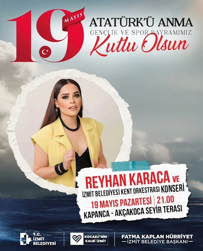 İzmit Belediyesi, 19 Mayıs Atatürk’ü Anma, Gençlik ve Spor Bayramı ile Uluslararası 2. Kapanca Sokak Festivali kapsamında Reyhan Karaca konseriyle unutulmaz bir akşam yaşatmaya hazırlanıyor