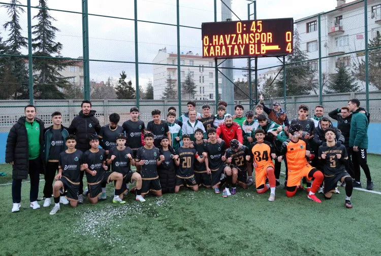 KONYA (İGFA) - 2025-2026 Futbol Sezonu Konya Amatör Küme U16 Ligi’nde mücadele eden Karatay Belediyespor Kulübü U16 Futbol Takımı, normal sezonu 15 galibiyet ve 1 beraberlikle namağlup lider tamamladı. İl finallerinde de başarılı performansını sürdüren ekip, B grubundaki üç maçını da kazanarak grubunu lider bitirdi.