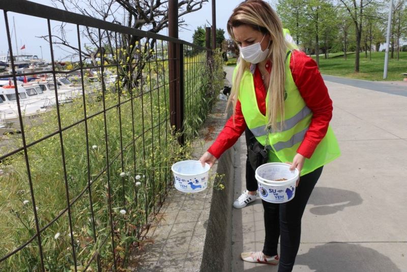 Tam kapanma nedeniyle görevli olanlar haricinde kimsenin giremediği sahil bandında sokak hayvanlarına mama ve su dağıtımı gerçekleştiren Kartal Belediyesi Veteriner İşleri Müdürlüğü ekiplerine, bu kez Kreş Müdürlüğü öğretmenleri de destek oldu.