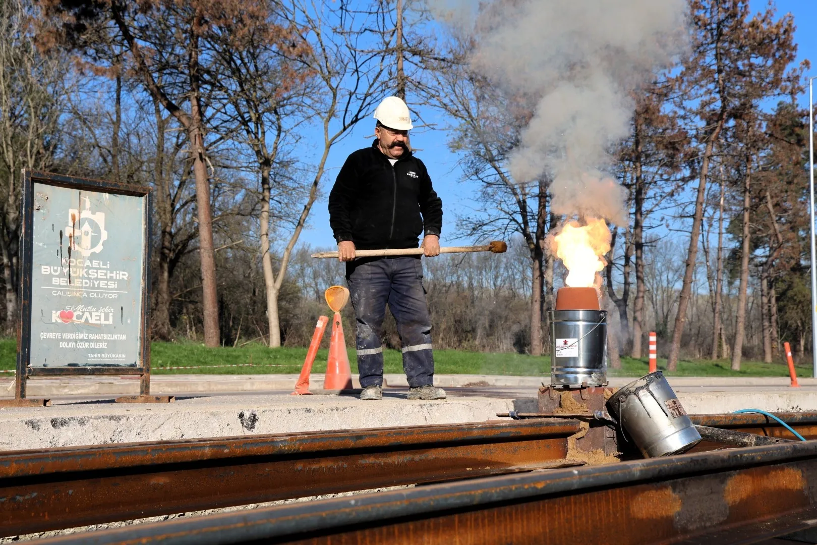 Kocaeli Büyükşehir Belediyesi, raylı sistem ağını bu kez “Kartepe Tramvay Hattı” ile güçlendiriyor. Kenti demir ağlarla ören Büyükşehir, bu hatta döşenen raylarda kaynak işlemlerine başladı.