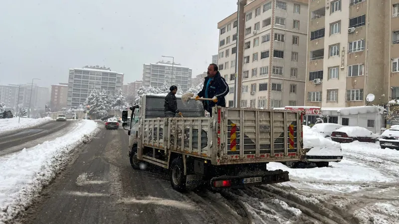 Kahramanmaraş'ta etkisini sürdüren yoğun kar yağışı nedeniyle Büyükşehir Belediyesi, ulaşımın aksamaması ve günlük yaşamın olumsuz etkilenmemesi için saha çalışmalarını aralıksız sürdürüyor. Ana arterler başta olmak üzere cadde, bulvar ve yoğun kullanılan güzergâhlarda kar küreme, tuzlama ve solisyon uygulamaları gece gündüz devam ediyor. Tüm birimler koordinasyon içinde hareket ediyor.