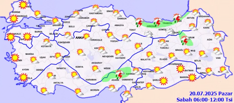 BURSA (İGFA) - Meteoroloji Genel Müdürlüğü 20 Temmuz 2025 Pazar gününe ilişkin hava tahmin raporunu yayımladı.