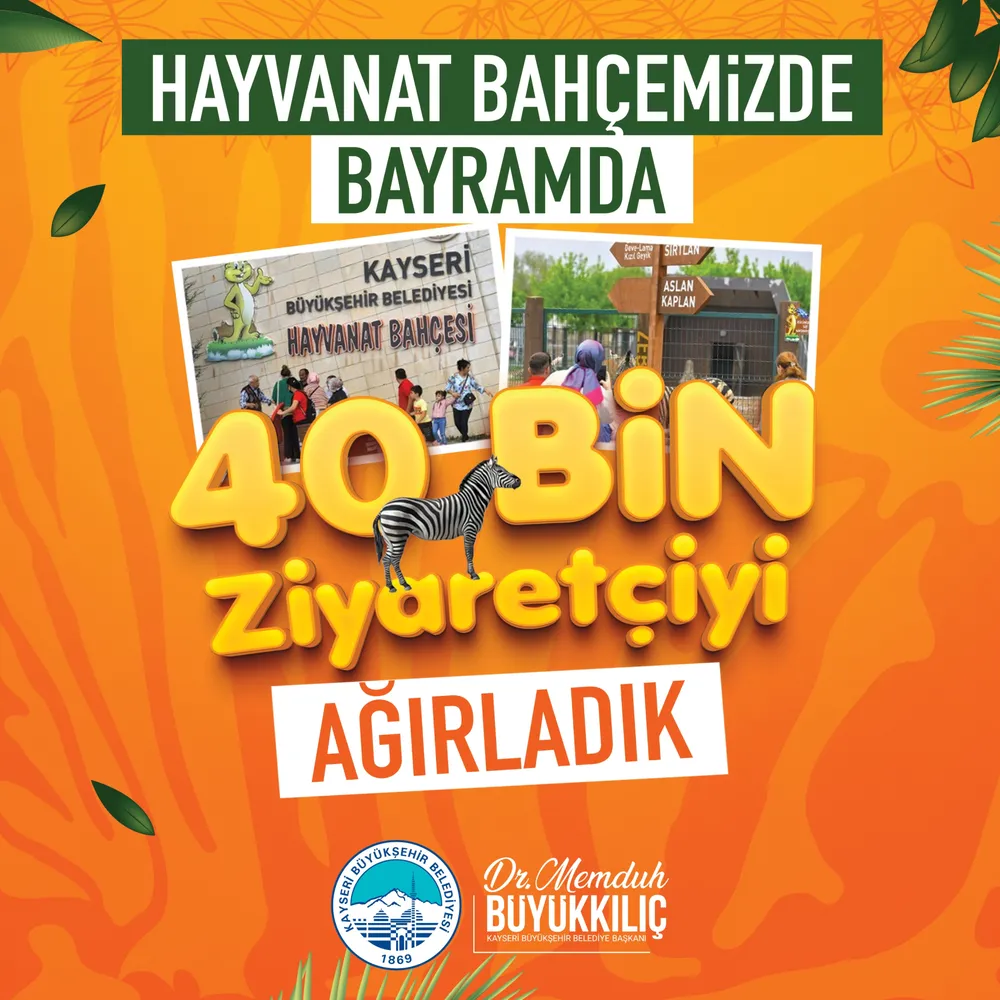 Kayseri Büyükşehir Belediyesi Hayvanat Bahçesi, Ramazan Bayramı'nın ikinci ve üçüncü günlerinde kapılarını ücretsiz olarak açtı. Bu uygulama, ziyaretçi akınına neden oldu ve iki günlük süreçte toplam 40 bin kişi hayvanat bahçesini ziyaret etti.