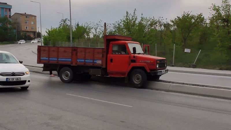 Sultangazi’de kaza yaptıktan sonra başka bir kazanın yaşanmaması için sürücüleri uyaran gençleri son anda fark eden kamyonet sürücüsü, refüje çıktı. Kıl payı atlatılan kazada araçta hasar oluştu.