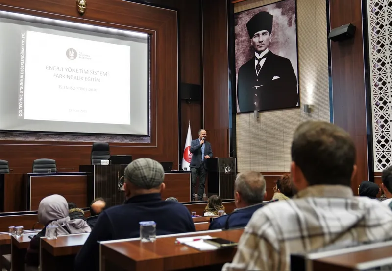 Keçiören Belediyesi, enerji verimliliğini artırmak ve sürdürülebilir yönetim anlayışını yaygınlaştırmak amacıyla birim müdürleri, sorumluları ve teknik personele yönelik “ISO 50001 Enerji Yönetim Sistemi Bilgilendirme ve Farkındalık Eğitimi” düzenledi. Eğitim, Belediye Meclis Salonu’nda gerçekleştirildi.