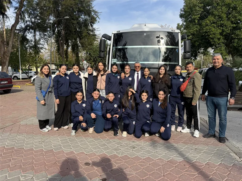 Finike Kidnes Spor Genç Kızlar ve Küçük Kızlar takımlarıyla oynayacakları müsabaka öncesi Kemer Belediyesi önünde toplanan takım oyuncularını ziyaret eden Başkan Topaloğlu, sporculara başarılar dileyerek Finike'ye uğurladı.