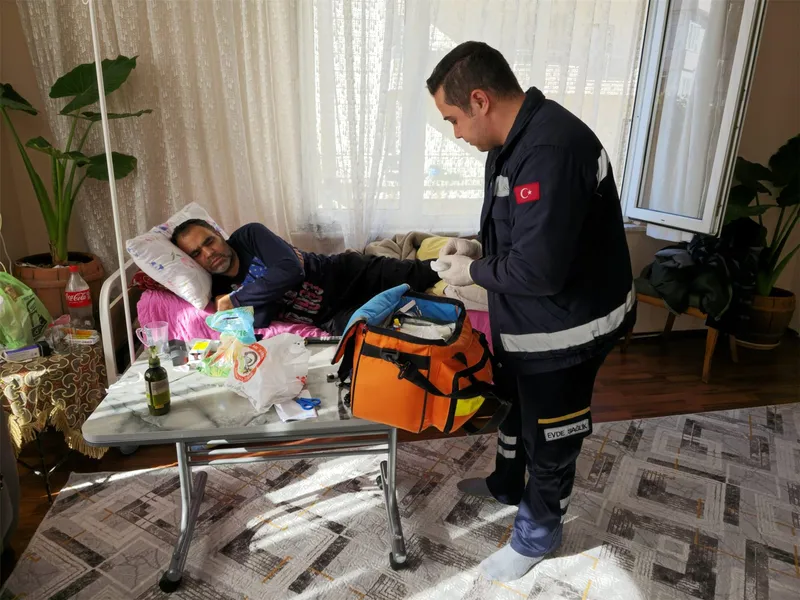 Kemer Belediyesi Sağlık İşleri Müdürlüğü ekipleri, evde bakım hizmetleri kapsamında haftanın belirli günlerinde hastaları ziyaret ediyor. Ekipler, ziyaretlerde hastaların pansuman ve tedavilerini yapıyor, ardından sohbet ederek ihtiyaçlarını soruyor.