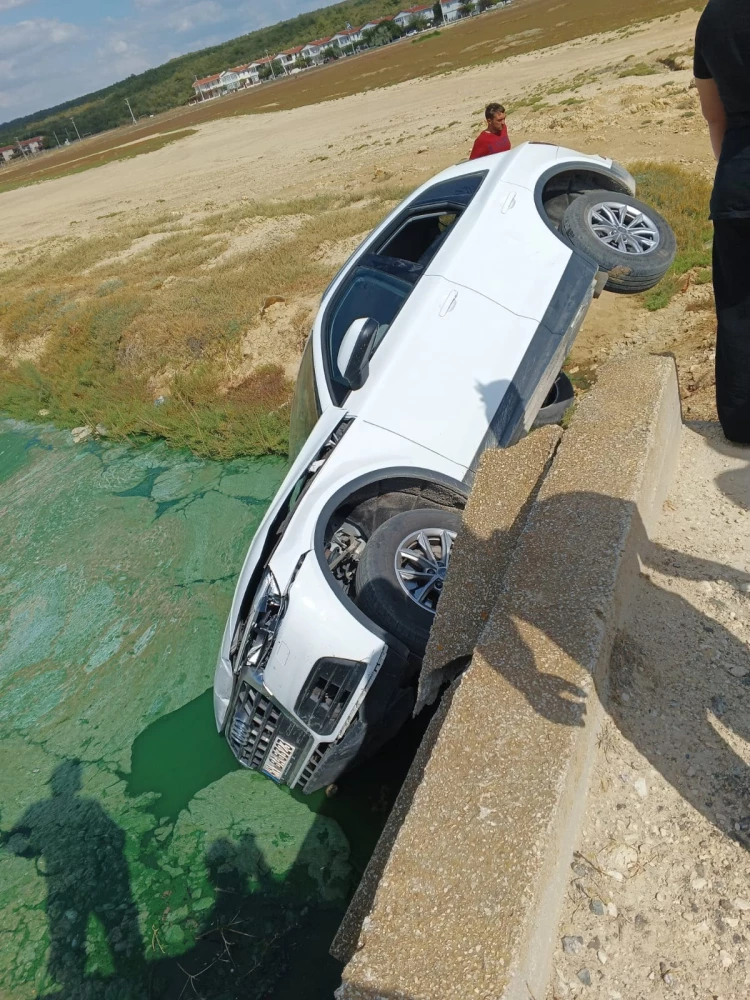 Edirne'nin Keşan ilçesine bağlı Yayla köyü sahilinde meydana gelen trafik kazasında, bir otomobil kontrolden çıkarak su kanalına düştü.
