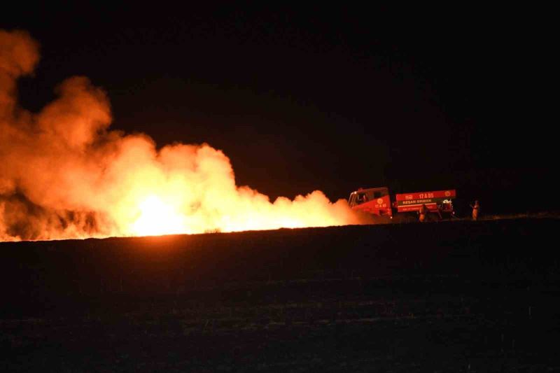 Yangında 100 dönüm buğday ekili alan zarar görürken, polis yangının çıkış sebebinin belirlenmesi için çalışma başlattı.