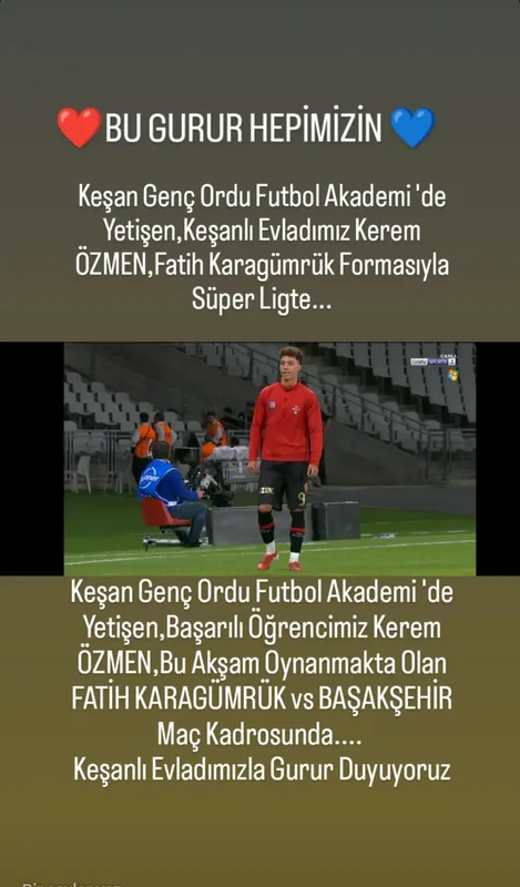 Genç futbolcu için yapılan paylaşımda, “Bu gurur hepimizin. Keşanlı evladımızla gurur duyuyoruz" ifadeleri yer aldı.