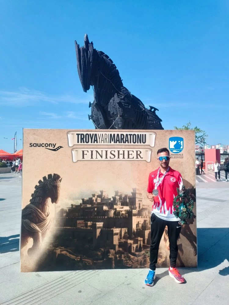 Edirne Keşanlı sporcu Ahmet Tek, Çanakkale Troya Yarı Maratonu'nda 6 kilometrelik parkuru şampiyon olarak tamamlayarak, sakatlık sonrası katıldığı ilk yarışta büyük bir başarıya imza attı.