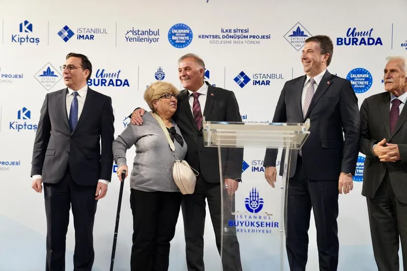 Çatalca Ferhatpaşa Mahallesi İstasyon Caddesi üzerindeki 8 blok, 71 konuttan oluşan 1989 üretimi İlke Sitesi, 2020 yılında riskli yapı ilan edildi. 94 hak sahibinin bulunduğu site, bir müteahhit ile anlaşılarak, aynı yıl içinde yıkıldı. Yıkımın ardından başlayan karmaşık süreç, temellerin atılmasını geciktirdi. İstanbul Büyükşehir Belediyesi (İBB) iştirak şirketi KİPTAŞ ve Çatalca Belediyesi arasında 17 Ekim 2024’te imzalanan “İstanbul Yenileniyor Sistemi İş Birliği Protokolü”, hak sahiplerinin güvencesi haline geldi. Belirsizlerle geçen yaklaşık 5 yıllık sürecin ardından, hak sahipleri, 6 Ocak 2025 tarihinde İstanbul Yenileniyor sistemine başvurdu. Mimari projenin hak sahipleri tarafından kabul edilmesiyle, süreç hızlandı. Hak sahipleri ile yapılan bilgilendirme toplantılarının ardından sıra, sözleşmelerin imzalanmasına geldi. “Çatalca İlke Sitesi Kentsel Dönüşüm Sözleşme İmza Töreni”; İBB Başkanvekili Nuri Aslan, Çatalca Belediye Başkanı Erhan Güzel, KİPTAŞ Genel Müdürü Gürkan Kaya ve hak sahiplerinin katılımlarıyla, Nazım Özbay Kültür Merkezi’nde gerçekleştirildi. Törende; Aslan, Güzel ve Kaya birer konuşma yaptı.