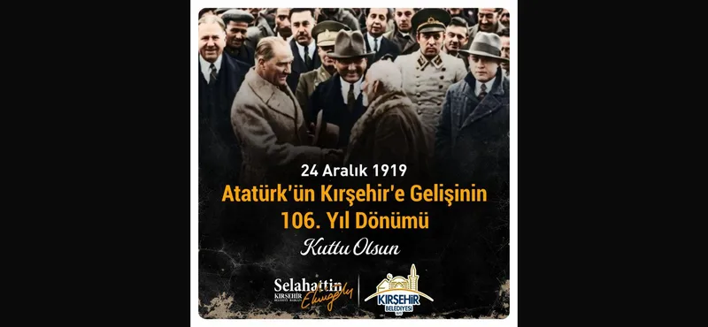 Kırşehir Belediye Başkanı Selahattin Ekicioğlu, Mustafa Kemal Atatürk ve beraberindeki Temsil Heyeti üyelerinin Kırşehir’e gelişinin 106. yılı nedeniyle bir mesaj yayınladı.