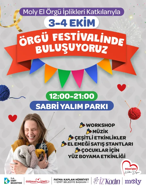 Moly El Örgü İplikleri’nin katkılarıyla daha da zenginleşen festivalde, katılımcılar iplik dünyasının renkli seçeneklerini yakından tanıma ve örgüye dair ilham verici fikirlerle buluşma fırsatı bulacak. Örgü Festivali, yalnızca alışveriş değil; paylaşım, dayanışma ve birlikte üretme kültürünü yaşatmayı hedefliyor. İzmit Belediyesi, tüm vatandaşları aileleriyle birlikte bu keyifli buluşmaya davet ederek festival coşkusuna ortak olmaya çağırıyor.